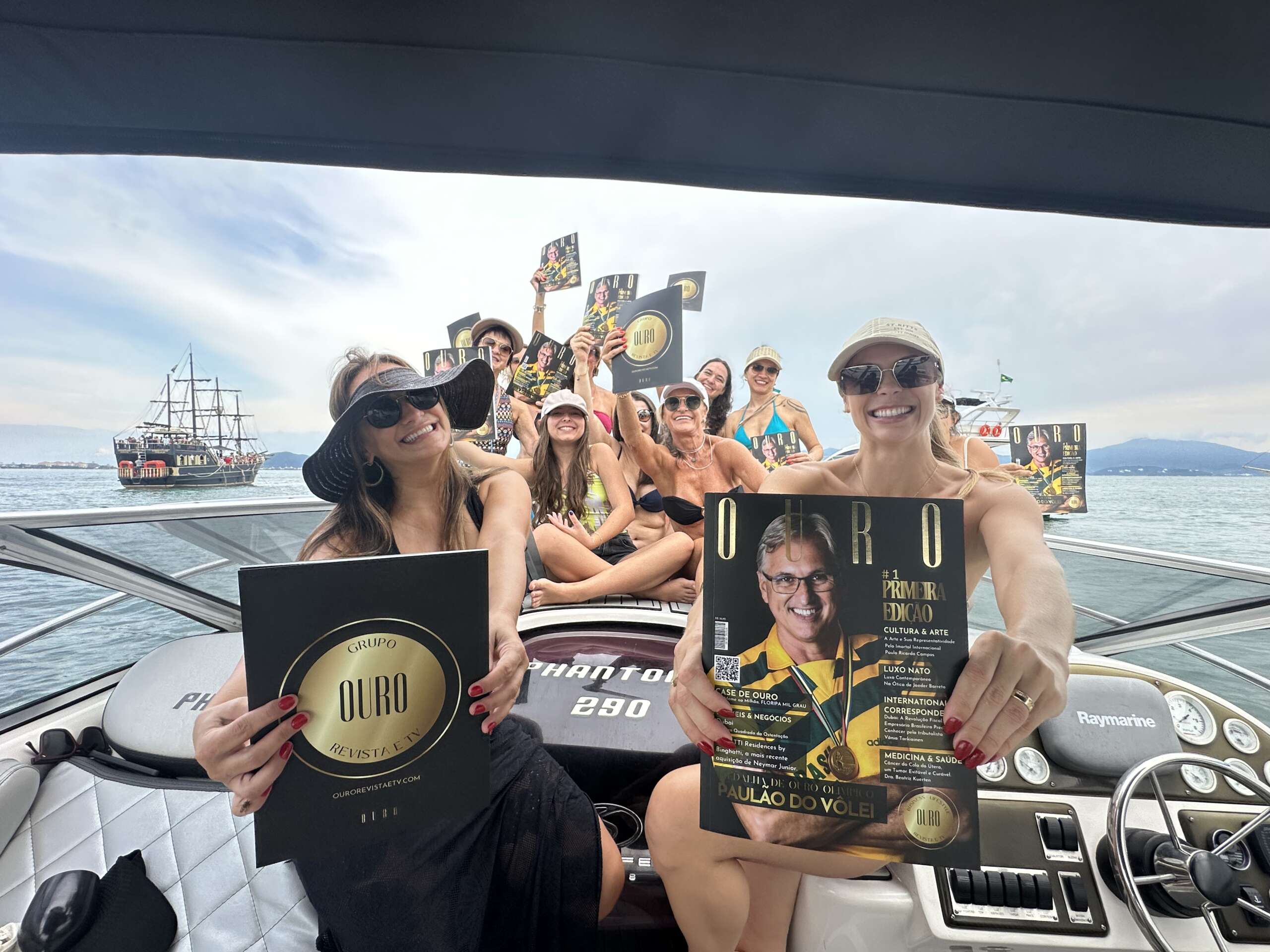 Em Abril, foi a vez da empresária e uma das mulheres que protagonizam o mosaico “Mulher Ouro” da edição #2, Léia Gerke, comemorar AO MAR seu aniversário. Cercada da filha Amanda Gerke e das amigas, Marta Holdefer, Marisa Meruvia, Letícia Meruvia, Evandra Zanella, Margarete Dorigo, Monia Gross, Márcia Bonow, Paula Moraes. A edição #1 da Ouro se fez presente com a CEO Clau Felippe, na comemoração de mulheres, onde até a marinheira era mulher, Mel, da Island Boat, conduzindo o barco e as festividades com maestria, propiciando mais do que um passeio, mas uma experiência! Os brindes e comemorações continuaram no dia seguinte no 300 Cosmo Beach em Jurerê Internacional, mas a comemoração foi tão intensa que nem conseguimos continuar os registros!