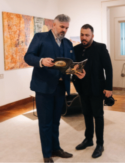 Hag Home Art Gallery, a primeira do Brasil. Que foi palco de tamanho feito! Data em que o parceiro, colunista, renomado Marchand e galerista da Hag, Marcus Vieira, abriu as portas de sua galeria de artes, para que a Ouro Revista e TV realizasse o Day Ouro São Paulo! Cenário e ambiência harmônica de música, cultura, gastronomia e brinde às conexões em meio a arte da Hag. A Ouro Revista e TV realizou o evento, assinado por Eliel Molina, da Mollina Assessoria e Planejamento e Atelie Mollina, que veio a rigor, de Apollo Rigor, com suporte da decoradora Kely Roque da Doce Detalhe e da também cerimonialista Glenda Soliman, ambos recrutados pela plataforma Meu Evento Perfeito. E sob a curadoria impecável de Marcus Viera. Clau Felippe recebeu seus convidados e parceiros vestida de Maria Náutica, em veludo ouro velho.
