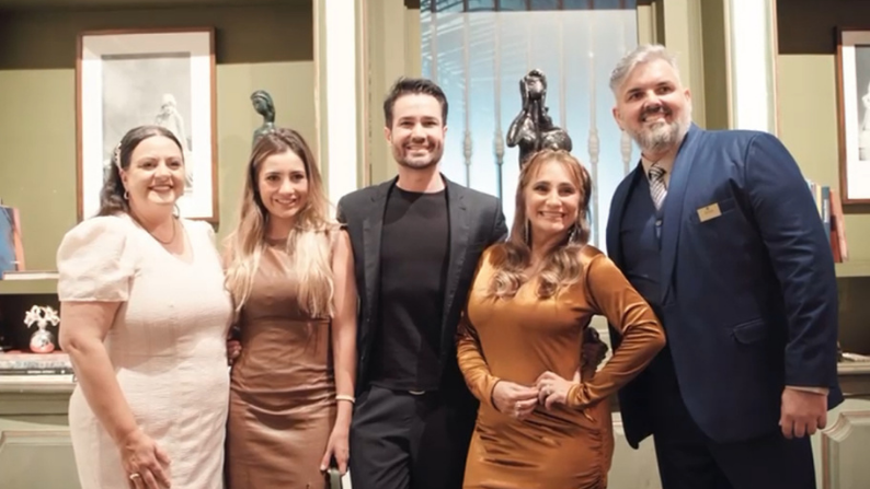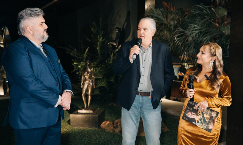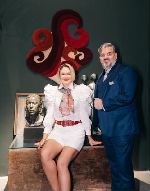 Hag Home Art Gallery, a primeira do Brasil. Que foi palco de tamanho feito! Data em que o parceiro, colunista, renomado Marchand e galerista da Hag, Marcus Vieira, abriu as portas de sua galeria de artes, para que a Ouro Revista e TV realizasse o Day Ouro São Paulo! Cenário e ambiência harmônica de música, cultura, gastronomia e brinde às conexões em meio a arte da Hag. A Ouro Revista e TV realizou o evento, assinado por Eliel Molina, da Mollina Assessoria e Planejamento e Atelie Mollina, que veio a rigor, de Apollo Rigor, com suporte da decoradora Kely Roque da Doce Detalhe e da também cerimonialista Glenda Soliman, ambos recrutados pela plataforma Meu Evento Perfeito. E sob a curadoria impecável de Marcus Viera. Clau Felippe recebeu seus convidados e parceiros vestida de Maria Náutica, em veludo ouro velho.