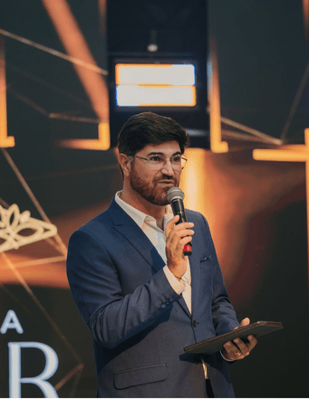 Zé Paulo, celebrante e mestre de cerimônias em ação, conduzindo com maestria o protocolo da ‘Feira Casar da Magia’, diretamente do encantador Espaço Lusch Garden