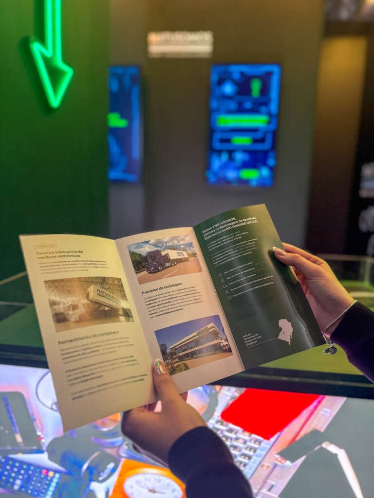 Com uma cenografia inspirada nos próprios elementos que compõem a matéria-prima da fábrica — resíduos eletrônicos reutilizados e reinterpretados — o espaço NatuSomos promete uma jornada imersiva e provocadora. Desde a recepção dos visitantes até a condução pelo “Túnel do Futuro”, a experiência será conduzida por uma equipe treinada nos princípios da hospitalidade corporativa, proporcionando acolhimento e sofisticação alinhados ao propósito da marca.